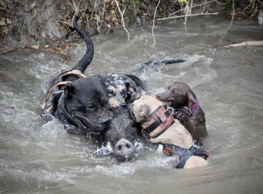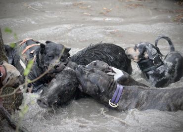 Like shooting, this management option typically removes only one hog at a time. However, unlike shooting, hunting with dogs can put pressure on a sounder of pigs that will make them more likely to leave an area at least temporarily. Additionally, since the dogs rely on scent to find the hogs, this tool can be a great option for removing trap shy pigs.